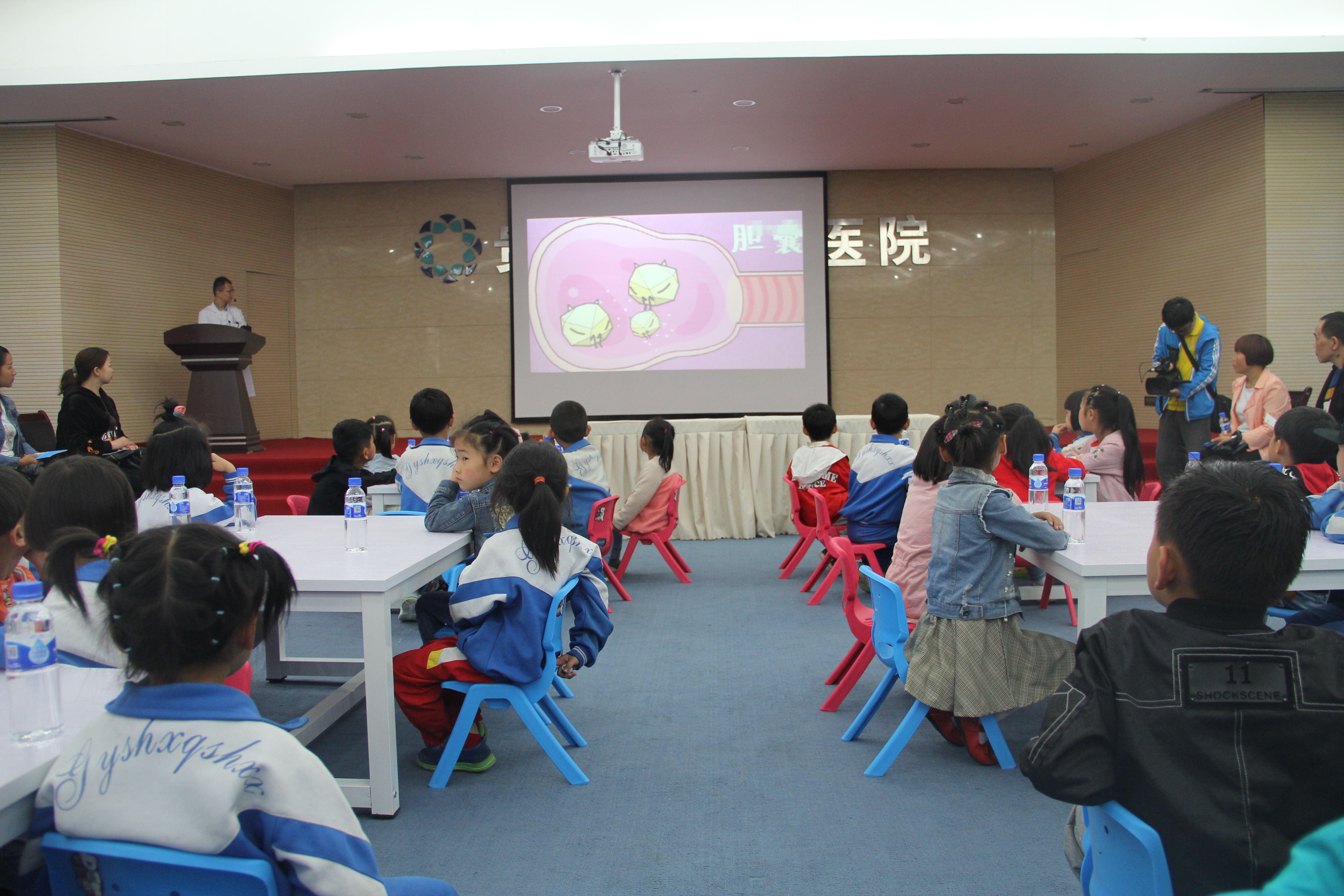 “早餐健康知识动画小课堂、参观贵阳结石博物馆、七步洗手法、量血压、听诊器的使用、模拟胆囊取石计时游戏、健康亲子绘画……”6月1号上午,来自全市范围的30名幼儿园、小学儿童,由家长陪同着,在贵阳结石病医院参加了一次别开生面的“结石小医生之旅”。
