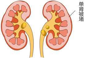 结石卡在狭窄处,把出口堵住了,尿液就无法排出体外,造成尿液全部堆积在肾脏内。